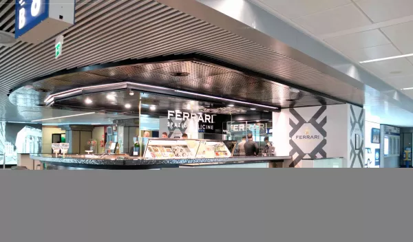 Ferrari Spazio Bollicine combine le plaisir du vin mousseux italien par excellence avec un large éventail de délices culinaires qui permettent aux voyageurs de profiter de l'expérience unique de l'apéritif italien. La force de ces établissements réside dans le partenariat entre Ferrari Trento, premier producteur de vin metodo classico en Italie, et Areas, qui a sélectionné un menu gastronomique exquis conçu par Alfio Ghezzi, chef de renom avec deux étoiles Michelin. Outre le prix Best Airport Wine Bar of the Year, ce concept a remporté le prix Regional Winner (Europe) dans la même catégorie.