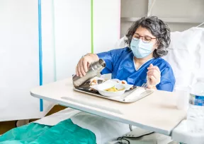 Le repas doit être un moment agréable dans le quotidien des patients d’établissements de soins et des résidents d’établissements médico-sociaux. L’objectif : maximiser le plaisir en respectant une politique nutritionnelle de qualité. Une alimentation saine et équilibrée est en effet souvent la première étape pour aller mieux. Elior conçoit des formules adaptées à chaque type de patient et résident, selon ses spécificités (personne âgée, en situation de handicap, etc.), ou selon sa pathologie (cancer, Alzheimer, etc.).