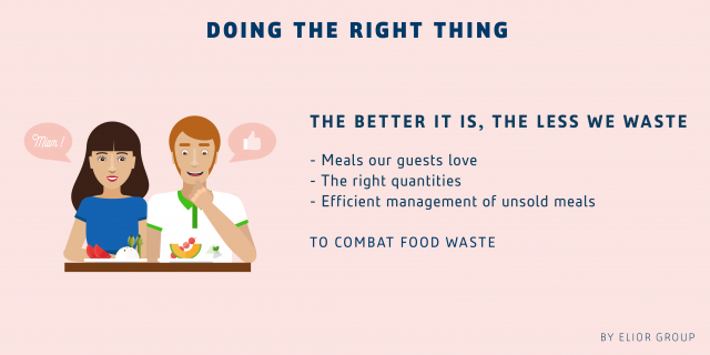 - Collective fight against food waste: all of the Group’s restaurants ensure that the food portions served are reasonable and encourage consumers to adopt sustainable eating habits. Educational food-waste games are also organized in school canteens to raise the awareness of children to the quantities of bread and water wasted every day. Within five years, this awareness campaign has touched 600,000 children and reduced food waste by 20-30%. To encourage Parisians to adopt new anti-waste habits, Elior Group, together with the Paris City Hall and Synhorcat, launched the first Parisian doggy bag in 2015. The Group is hoping to encourage caterers to adopt new habits and allow consumers to take their left-overs home.