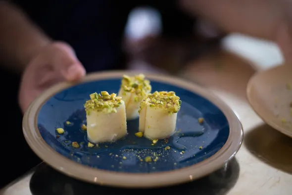Every 2 to 6 months, La Résidence hands over the reins to a new refugee chef, with refugee status in France. This enables refugee chefs to promote and share the savors of their culinary heritage. Hailing from Syria, Iran and Georgia, all of the invited chefs are skilled professionals.