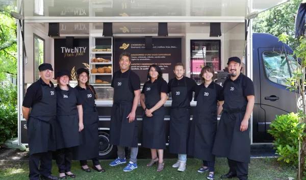 Elior's "Twenty" made-to-order sandwich bar concept, until now a feature in the corporate restaurant segment with two sites in the Paris region (at La Défense and Massy), has already proven its originality by providing a made-to-order sandwich bar service offering a large choice of prime French produce: PGI Bayonne ham; red-label rosette de Lyon (pure pork slicing sausage), Guéméné andouille (smoked sausage), Beaufort AOC cheese and even Espelette chilli pepper, etc. For the first time, this catering concept takes to the road in the form of the Elior “Twenty” food truck. This creation, which required three months of work to adapt the food truck so that it could meet collective-catering requirements «made sense in response to contemporary urban trends " confirmed Philippe Simon, Director of Marketing Operations in the fast-food catering division which initiated the project.