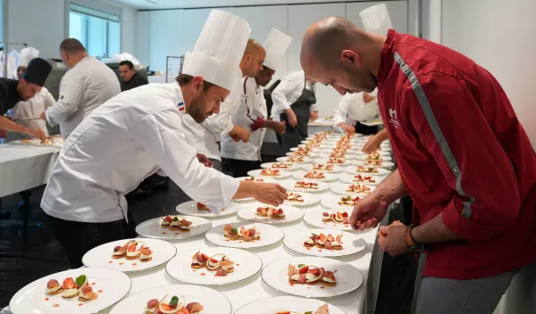 The 16 chefs hailing from France, India, Italy, Spain, the United Kingdom and the United States worked for two days in three teams, each of which was assigned the task of using fresh and seasonal produce to prepare either a starter, a main dish or a dessert. The Group’s top 120 managers then tasted and rated each dish on the following aspects: presentation, taste and recipe originality.