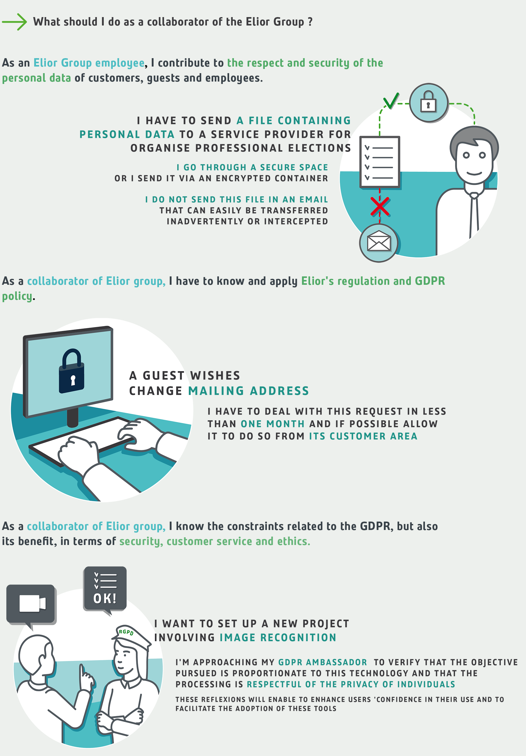 As an employee, the Elior Group collects and processes a significant amount of data concerning you. As such, the Elior Group has a duty to treat your data transparently and fairly and to ensure the security.