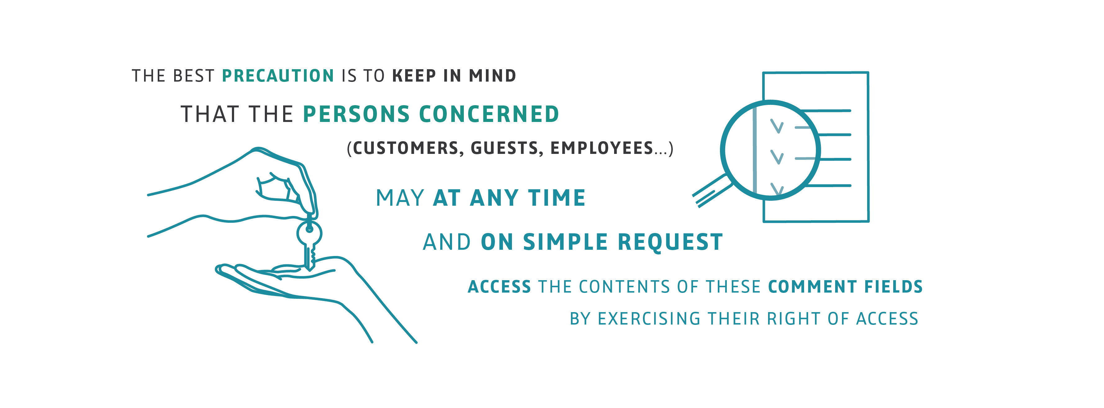 Special precautions are required. These free text fields are useful for tracking a file or customizing a relationship. While it is not prohibited to use them, awareness-raising actions and management rules must govern their use to prevent the comments entered from infringing the rights of the persons concerned.