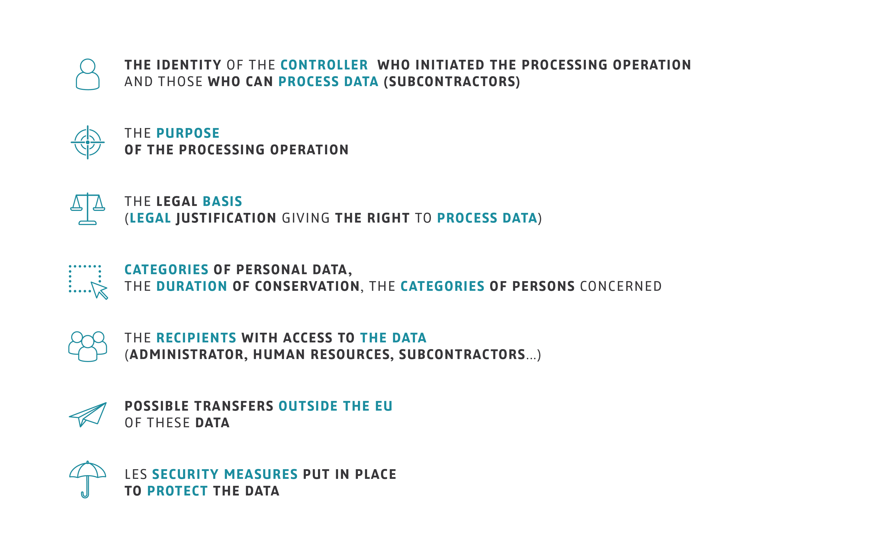 To do this,the Group must keep and maintain over time a register detailing all relevant information on processing operations: